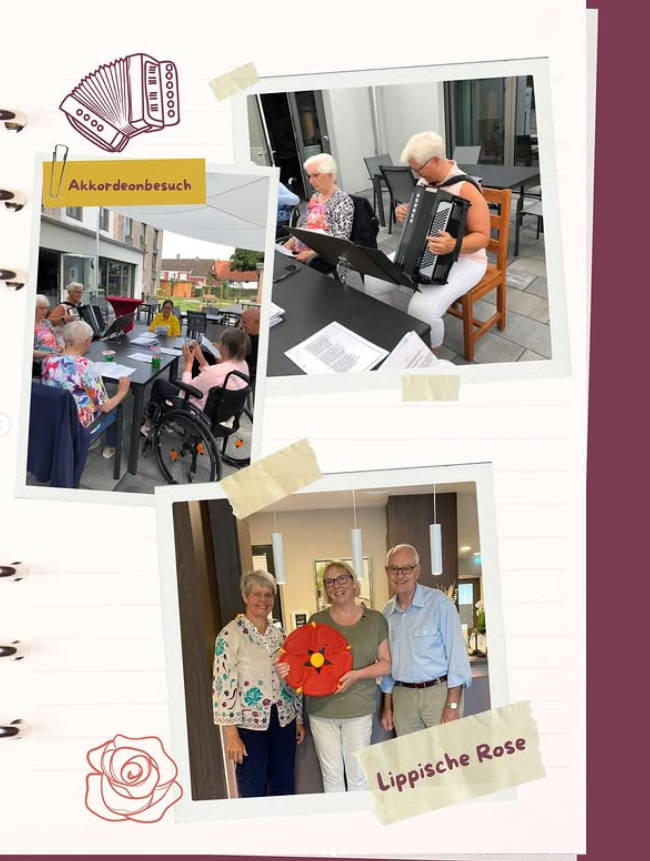 Auch die Musik kam nicht zu kurz: Die Tochter einer Bewohnerin besuchte mit ihrem Akkordeon. Schnell entstand ein kleiner Gesangskreis im Garten, in dem bekannte Lieder gemeinsam gesungen wurden – mal beschwingt, mal besinnlich. Die Kombination aus warmer Sommerluft und Musik schuf eine besondere Atmosphäre.