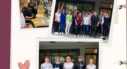 Am 1. September gab es gleich zwei besondere Anlässe: Neue Kolleg*innen aus Küche, Reinigung und Pflege wurden mit einem gemeinsamen Frühstück willkommen geheißen. Außerdem traten vier Auszubildende der Pflegefachassistenz ihren ersten Praxiseinsatz an. Zum Einstieg erhielt jede*r ein Samsung-Tablet sowie eine bunt gefüllte Schultüte – ein motivierender und herzlicher Beginn ihrer Ausbildung.