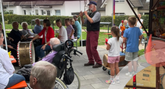 Es war ein schöner Vormittag, an dem alle beisammen waren und die Gemeinschaft genossen haben. Nachmittags ging es direkt mit unserem Sommerfest weiter! Hier kam „Der Mundwerker“ ins Spiel, der uns mit seinen vielen Instrumenten begeistert hat. Unsere Bewohner*innen und Gäste wurden aktiv mit einbezogen – es wurde gemeinsam musiziert, gesungen und gelacht.