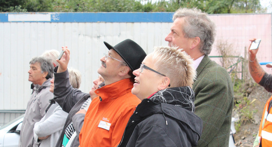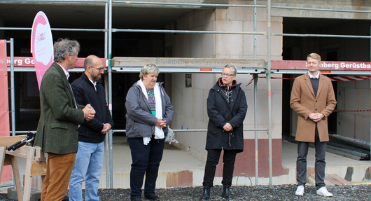 Unter dem Richtkranz versammelten sich rund 40 geladene Gäste und folgten dem Richtspruch und dem traditionellen Einschlagen des letzten Nagels. Die Zeremonie fand im Beisein von Eberhard Freiherr von Wrede, Mitglied des Kirchenvorstandes St. Hubertus Amecke und Vertreter der Verkäuferin des heutigen Baugrundstückes, statt. Für das leibliche Wohl der Gäste auf der Veranstaltung war bestens gesorgt und es gab sehr großes Interesse an Informationen rund um die neu entstehende Seniorenresidenz, die Cureus langfristig im Eigentum behalten wird.