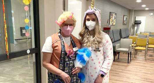 Zum Abschluss des Karneval-Feiertages gab es passend dazu Berliner und Kaffee im bunt dekoriertem Bewohnerrestaurant. Unsere Bewohner*innen haben sich richtig über den Besuch gefreut.