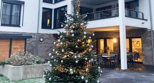 Für die Dekoration unserer Residenz haben unsere Mitarbeiter*innen fleißig mitgeholfen und angepackt. Kurzerhand fanden sich genügend Weihnachtsenthusiasten zusammen, die in der Einrichtung für eine heimelige Stimmung sorgten. Für die richtige Weihnachtsatmosphäre sorgte auch der erste Schnee in vergangener Woche. Denn dieser tauchte sowohl unsere Mathilde als auch unseren neuen Weihnachtsbaum in ein weißes Kleid.