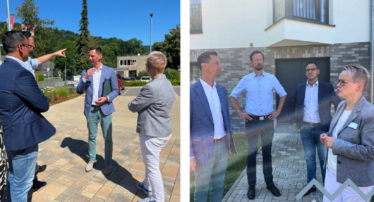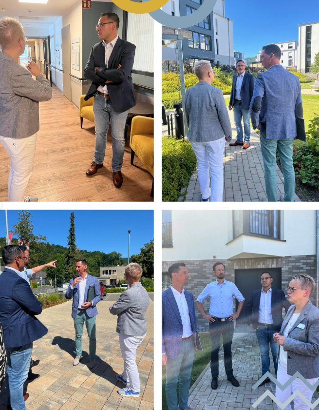 Seit der Eröffnung im Februar 2022 hat sich die Einrichtung fest im Stadtbild verankert – heute bietet sie rund 100 Mitarbeiterinnen und Mitarbeitern einen sicheren Arbeitsplatz. Beim Rundgang durch die Wohnbereiche und den Garten gab es viele interessierte Fragen, persönliche Begegnungen und einen kurzen Stopp bei Mathilde, die die Gäste mit ihrem offenen Lächeln empfing.