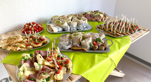 Auch die Hauswirtschaftsleitung in Delbrück ist mittlerweile eingestellt und so hat Danilo Braun direkt schon für eine köstliche Verpflegung in Form eines leckeren Finger-Food-Buffet gesorgt. Mit den Häppchen und kühlen Getränken ließ es sich direkt besser unterhalten.